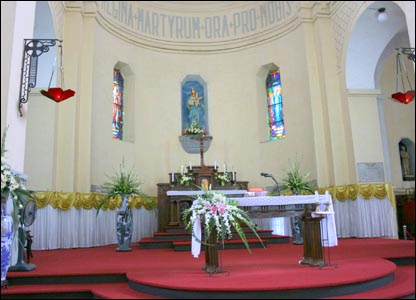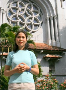 Chủ nhật cũng có lễ cầu nguyện cho người nước ngoài đang ở Hà Nội. Mya, người Ấn Độ, nói cô rất vui khi gặp các giáo dân người Việt.