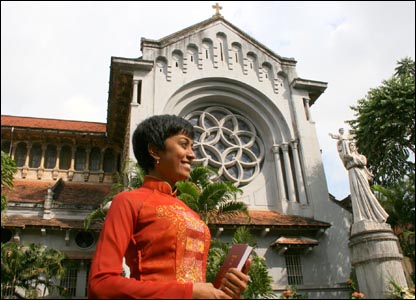 Giáo dân Trần Quỳnh Trang đã đi lễ tại nhà thờ này được tám năm. Cô nói: "Tôi đã sang Hoa Kỳ, thấy mọi người ở đó rất cởi mở, thân thiện, cũng giống như ở đây."