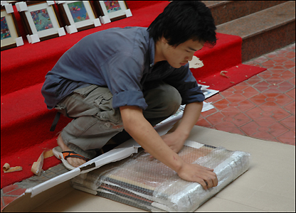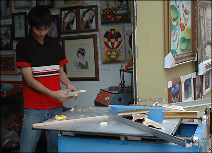 Làng Đại Phấn cung cấp đủ mọi khâu và dịch vụ cho việc sản xuất tranh, từ vải khung, sơn dầu, cọ vẽ, cho đến làm khung, kể cả việc thiết kế các trang web để chào hàng.