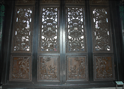 Điêu khắc hoặc chạm trổ trên gỗ chiếm đa số các tác phẩm trong đền mà đáng chú ý nhất là các tranh mô tả thời Tam Quốc.