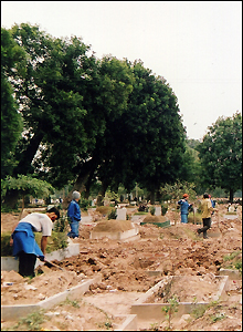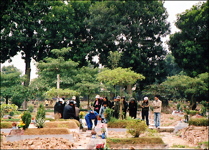 Nghĩa trang đẹp như vườn hoa. Chỉ có những gia đình trung lưu trở lên mới có đất để xây cất mộ.