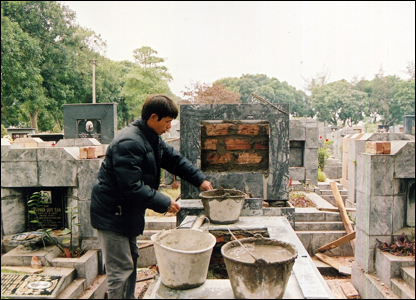 Anh Đại ở thôn Huỳnh Cung, xã Tam Hiệp, huyện Thanh Trì, Hà Nội là người xây mộ thuê. Hai tháng cuối năm người ta mới sang mộ nên anh chỉ có việc làm hai tháng đó, còn lại anh và gia đình trông thuê mộ. Mỗi một ngôi mộ bình quân 30 nghìn đồng/ tháng.