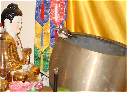 Sau lễ phóng sinh, con chim nhỏ bay trở vào chùa, đậu bên tuợng Phật nghiêng đầu khan tiếng hót như thỉnh cầu, như tạ từ rồi mới bay đi tìm mùa Xuân.
