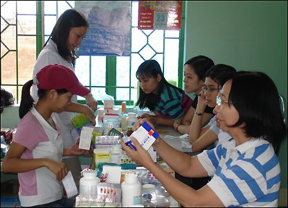 Đoàn kết với trạm y tế xã Hồng Liêm để tổ chức công việc khám chữa bệnh cho bà con thật chu đáo.