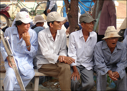 Bà con mong chờ đoàn khám bệnh từ sáng dưới cái nắng chói chang.