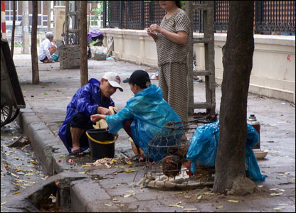Người từ nước ngoài đến Việt Nam nghe nhiều về cúm gia cầm nên cũng e ngại cảnh mua bán và làm thịt gà vịt ngoài phố.