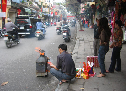 Thăm lại bạn bè cũ, một vài nơi chốn cũ, và đặc biệt thăm những nơi mà trước đây chúng tôi chưa từng ghé chân đến. Trong hình là cảnh cúng tân niên của một cửa tiệm buôn bán trong Hà Nội 36 phố phường.