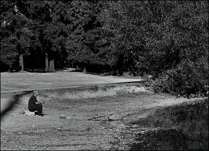 Một buổi sáng rất sớm, một cụ ông người Việt ngồi câu cá mà chẳng có một ai đến.