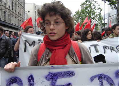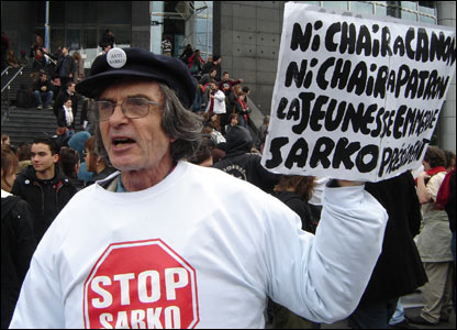 Anh Chiboit JCR là thành viên của tổ chức Thanh niên Cách mạng Cộng sản (JCR), cho biết cuộc biểu tình được tổ chức nhằm để cảnh báo về "chủ nghĩa Sarkozy" trong giáo dục hay việc muốn trục xuất những người không có giấy tờ đang cư trú tại Pháp.
