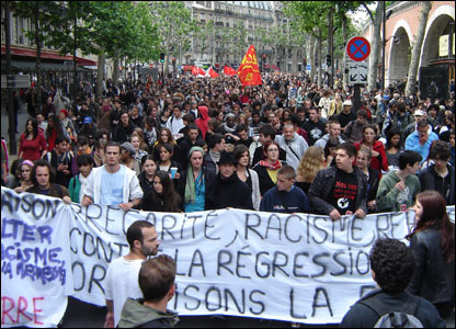 Đã có rất nhiều cuộc biểu tình xảy ra trên toàn nước Pháp trong ngày 16/5 - là ngày ông Nicolas Sarkozy lên nhậm chức tân Tổng thống. Mục đích là để chống lại các chính sách và các dự luật mà tân Tổng thống dự định áp dụng.