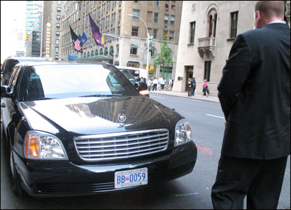 Chiếc xe chở Chủ tịch Việt Nam Nguyễn Minh Triết đến trước khách sạn.