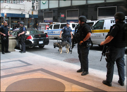 An ninh Hoa Kỳ canh phòng cẩn mật với cả chó nghiệp vụ dạo trên hè phố.