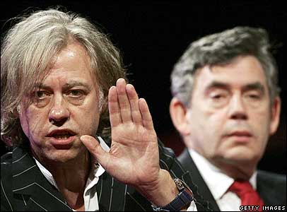 Ông Brown vận động giảm nghèo cho các nước đang phát triển, thường xuất hiện bên cạnh những nhạc sĩ đồng chí hướng như Bob Geldof.