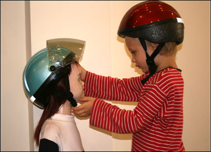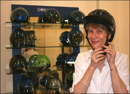 Nơi tôi gặp bà Vibeke Jensen cũng chính là quầy bán mũ bảo hiểm của Quỹ Phòng Chống Thương Vong Châu Á, một tổ chức quốc tế quảng bá cho an toàn giao thông tại Việt Nam. Bà Nguyễn Lan Hương, Giám đốc Điều hành nói chính phủ đang có chủ trương buộc người đi xe máy đội mũ trên mọi tuyến đường.