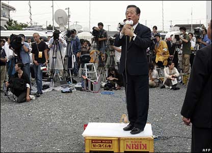 Ichiro Ozawa, lãnh tụ của đảng đối lập, Đảng Dân Chủ Nhật Bản, kêu gọi mọi người đi bỏ phiếu để tạo ra thay đổi và thay đổi chính phủ