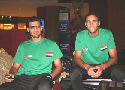 Đội tuyển Iraq hiện cũng ở khách sạn này. Hai cầu thủ Ali (mang áo số 15) và Mohammed (số 23) ngồi tại sảnh khách sạn.