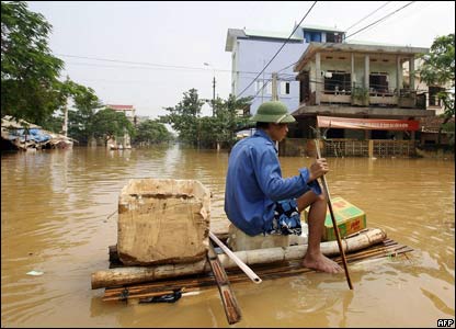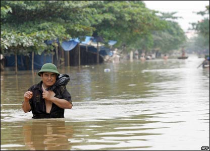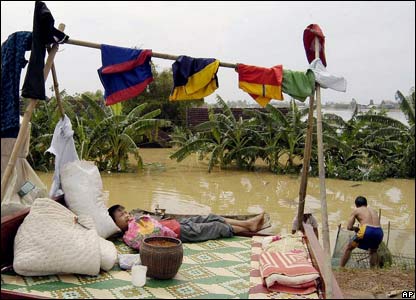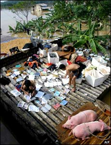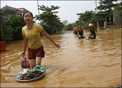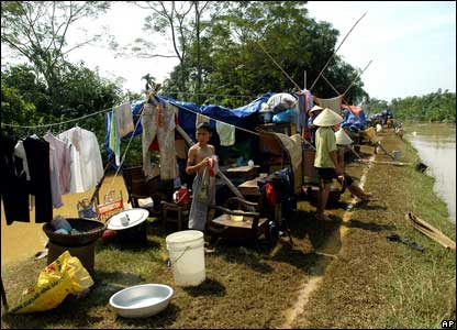 Hết bão tới lũ lụt. Người dân đang phơi quần áo tại Ninh Bình, nơi đang chịu trận lũ tồi tệ nhất trong nhiều năm qua.
