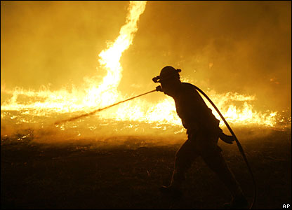 Sức gió mạnh như bão đã làm bùng lên các đám cháy. Người ta cho rằng các đợt hỏa hoạn này sẽ không giảm đi cho tới giữa tuần. | |||||||||||||||||||||||||||||||||||||||||||||||||||||||||||||||||||||||||||||