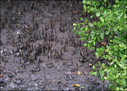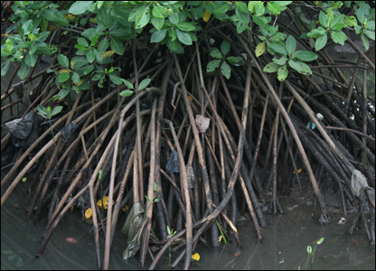 Rừng đước bảo vệ bờ biển cũng như ngăn không để đất lấn biển nhưng rác thải có thể làm cây ngạt thở.