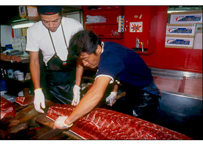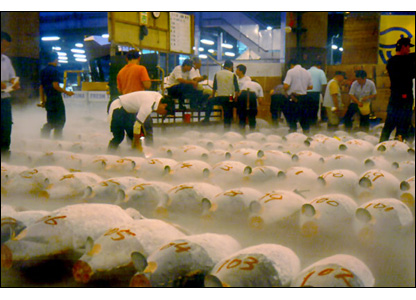 Cá mua về được lọc thịt làm gỏi sashimi hoặc làm sushi. Thế giới cũng bắt đầu ăn gỏi cá ngừ, và nhu cầu về cá ngừ trên toàn cầu ngày càng tăng. Nhật Bản đã đưa ra một chương trình truy tìm xuất xứ cá ngừ bán tại thị trường để ngăn chặn nạn bắt trộm. | |||||||||||||||||||||||||||||||||||||||||||||||||||||||||||||||||||||||||||||