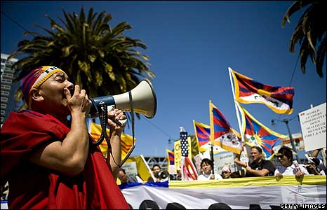 Giống như người biểu tình ở London và Paris, những người phản đối tại San Francisco hôm thứ Tư đã tập trung dọc theo lộ trình rước đuốc Olympic để phản đối lối hành xử của Bắc Kinh tại Tây Tạng.