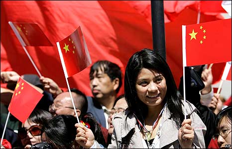 Tuy nhiên, cũng có nhiều người ủng hộ Trung Quốc đứng đợi dọc đường.