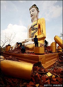 Những nơi được xây dựng kiên cố hơn như các chùa chiền cũng bị bão phá tan tành.