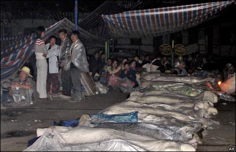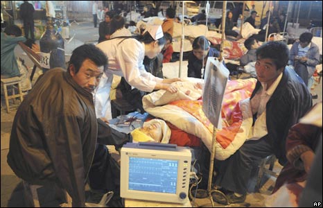 Một viên chức ở quận Vấn Xuyên, tâm điểm động đất, đã kêu gọi cung cấp ngay lều bạt, thực phẩm và thuốc men. | CÁC BÀI LIÊN QUAN Hình ảnh động đất ở Tứ Xuyên12 Tháng 5, 2008 | Trang Ảnh Lời kể của nhân chứng động đất13 Tháng 5, 2008 | Thế giới Hàng ngàn người chết ở Tứ Xuyên 12 Tháng 5, 2008 | Thế giới | ||||||||||||||||||||||||||||||||||||||||||||||||||||||||||||||||||||||||||||