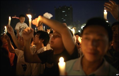 Các lễ tưởng niệm nghiêm trang tiếp tục cả trong đêm, như buổi lễ thắp nến cầu nguyện này tại Thành Đô. | |||||||||||||||||||||||||||||||||||||||||||||||||||||||||||||||||||||||||||||