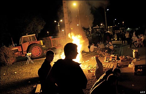 Các ngư dân Pháp cũng đã biểu tình trong nhiều tuần lễ, và một số nông dân cũng tham gia vào các cuộc biểu tình trong tuần vừa rồi. Họ dùng máy kéo chặn đường vào các kho dầu.
