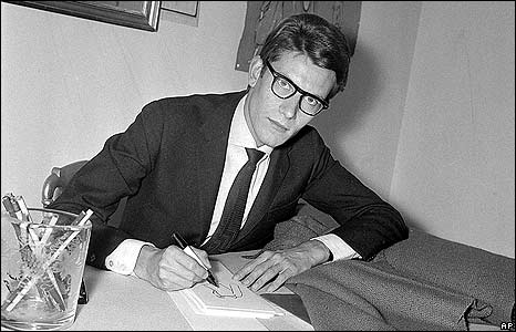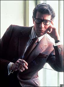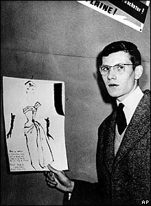 Tuy nhiên thế kỷ 21 tới cũng là lúc YSL nghĩ tới việc chia tay thế giới thời trang. Trên ảnh, ông gửi khán giả chiếc hôn gió tại buổi trình diễn bộ sưu tập Thu Đông 2000-2001.
