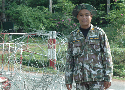 Anh Keorat, lính đặc nhiệm Thái Lan: "Tôi nhận lệnh không cho bất cứ ai vào bên trong vì có thể xảy ra nguy hiểm tính mạng. Rất đáng tiếc, vì bên trong khu này tuyệt đẹp. Thôi, xin hẹn nhà báo vào dịp khác vậy ".