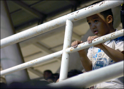 Còn cô bé này thì buồn thiu vì mãi trận đấu chưa diễn ra.