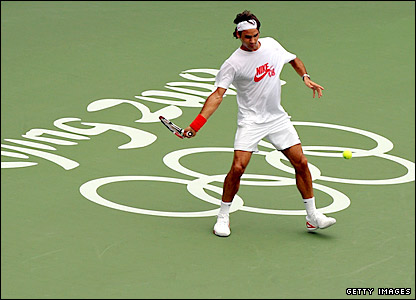 Đối thủ của Nadal, là Roger Federer, thì đã tập luyện đều đặn tại trung tâm tennis Xanh của Olympics.