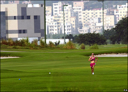 Vận động viên marathon Paula Radcliffe của Anh tham gia cùng đội tuyển tập huấn tại Macau, bỏ đi những lo ngại về sức khoẻ của cô khi trước. Trong hình là cảnh cô tập luyện vào sáng sớm.