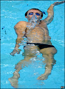 Tấm hình này chụp tư thế hơi kỳ cục của vận động viên bơi người Mỹ, Aaron Peirsol, khi anh đang tập luyện.