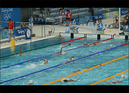Bên trong Thủy Lập Phương, các vận động viên đang có sự chuẩn bị trong vài ngày cuối trước khi cuộc thi bơi lội bắt đầu.
