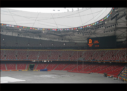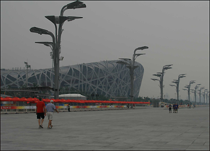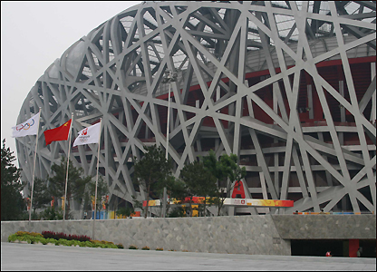 Sáng tạo của cặp đôi người Thụy Sĩ, Herzog và de Meuron, và kiến trúc sư Trung Quốc Lý Hưng Cương được xem là công trình tuyệt mỹ và quả thực đã gây ấn tượng mạnh dù bầu trời (06.08) lại trở nên xám xịt vì bụi mù.
