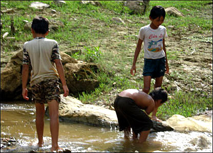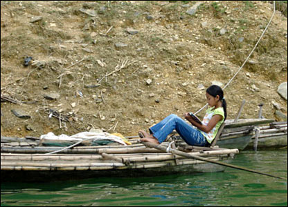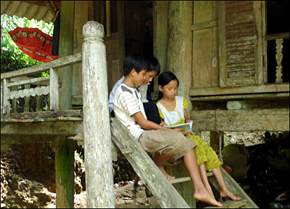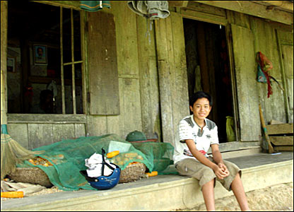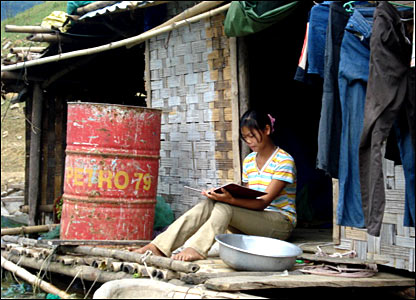 Thành-một học sinh trong dịp hè. Trừ sách giáo khoa và vở viết được chính phủ tài trợ, trường không có bất kỳ tài liệu và thiết bị giảng dạy tiếng Anh nào khác.