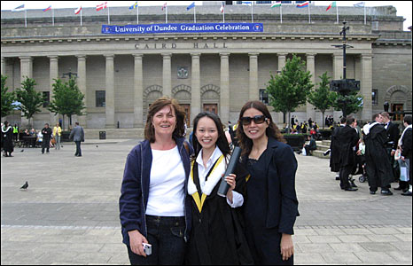 Hè 2008, tôi đã tốt nghiệp Khoa Kinh doanh Quốc tế, Trường Đại học Dundee. Niềm vui của tôi như được nhân đôi, vì vừa có mẹ đẻ là Bùi Thuý Hằng vừa có cả mẹ nuôi người Anh là Laura Allan đến dự lễ tốt nghiệp. Hy vọng với kiến thức học tại VN và Anh quốc, tôi sẽ phát huy năng lực góp một phần nhỏ bé phát triển quan hệ ngoại giao hai nước và mang lại niềm vui cho cả hai bà mẹ, hai đất nước Việt -Anh. | |||||||||||||||||||||||||||||||||||||||||||||||||||||||||||||||||||||||||||||