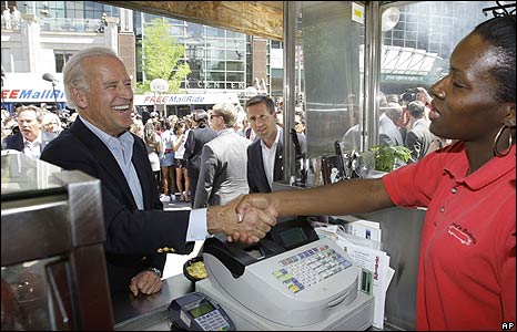 Người được chọn cho vị trí ứng viên phó tổng thống, Joe Biden, gặp gỡ cử tri.