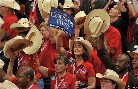 Các thành viên đảng Cộng hòa đã tập trung để bày tỏ sự ủng hộ cho ứng viên Tổng thống của họ, John McCain, và người cùng ra tranh cử chức phó Tổng thống, Sarah Palin, trong ngày thứ hai của đại hội đảng ở St Paul, Minnesota.