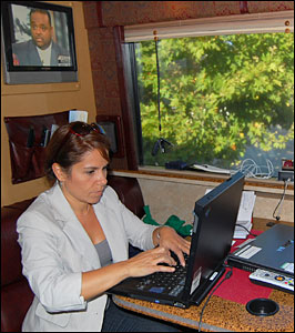 Đây là chiếc xe bus sẽ chở các phóng viên của BBC đi tìm hiểu nước Mỹ nhân dịp chuẩn bị bầu cử Tổng thống. Chiều 9/9, tôi được gọi về họp mặt tại Los Angeles để chuẩn bị bắt đầu hành trình vào hôm sau.