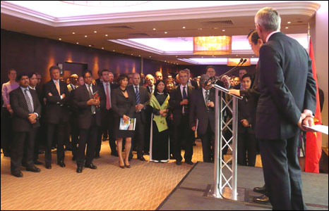 Cũng trong hôm 8 tháng Chín, tại một khách sạn ở London, Đại Sứ quán Việt Nam tổ chức chiêu đãi nhân kỷ niệm Quốc khánh Việt Nam và 35 năm thiết lập quan hệ Việt - Anh