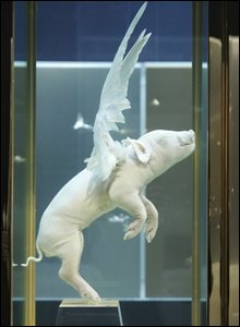 Tác phẩm "Con lợn bay" của Hirst tiếp nối dòng sáng tạo dùng thú vật làm nghệ thuật. Chú heo con cùng với các thú khác được mang ra đấu giá được rất nhiều người để ý và quan tâm. | |||||||||||||||||||||||||||||||||||||||||||||||||||||||||||||||||||||||||||||