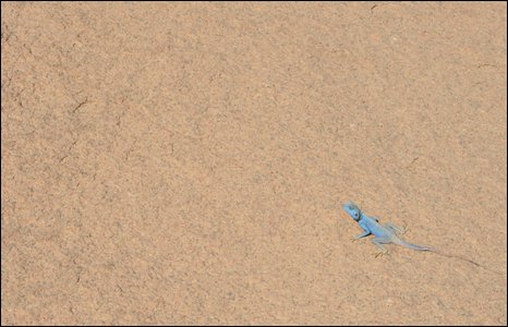 Chris Wall kể: "Lúc đang đi xuống từ núi Sinai (ở Ai Cập), tôi nhìn thấy con thằn lằn màu xanh này."