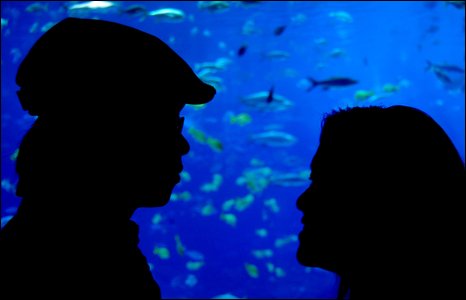 Thanwalee Sooksa-nguan: "Một đôi tình nhân trò chuyện trước bể cá trong bảo tàng hải dương học Georgia ở Atlanta."