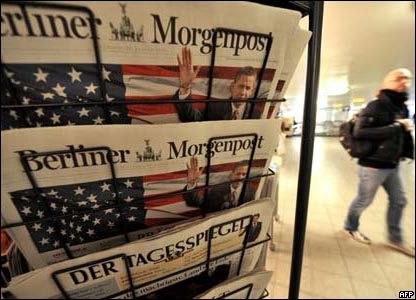 Ngày nhậm chức của ông Obama, người Mỹ da đen đầu tiên làm tổng thống Hoa Kỳ được báo chí quốc tế quan tâm đặc biệt - như trên tờ báo này tại Đức. | CÁC BÀI LIÊN QUAN Ảnh từ San Francisco ngày Obama nhậm chức21 Tháng 1, 2009 | Trang Ảnh Tổng thống Barack Obama tuyên thệ20 Tháng 1, 2009 | Trang Ảnh Chân dung Obama được mua08 Tháng 1, 2009 | Văn hóa Người Mỹ gốc Á ăn mừng tổng thống20 Tháng 1, 2009 | Trang Ảnh | ||||||||||||||||||||||||||||||||||||||||||||||||||||||||||||||||||||||||||||