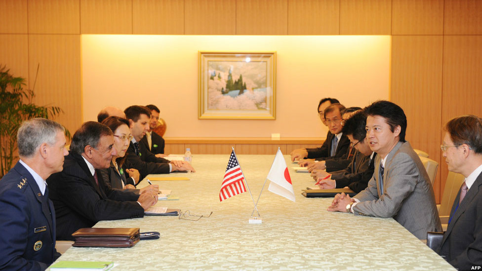 • Ngoại trưởng Nhật Koichiro Gemba (thứ hai, từ phải) hội đàm với Bộ trưởng Quốc phòng Hoa Kỳ Leon Panetta (thứ hai, từ trái) trong cuộc họp tại Tokyo ngày 17/09/2012. Nhật và Mỹ vừa thông qua kế hoạch thành lập hệ thống tên lửa phòng thủ thứ hai tại Nhật, địa điểm chính xác chưa được công bố.