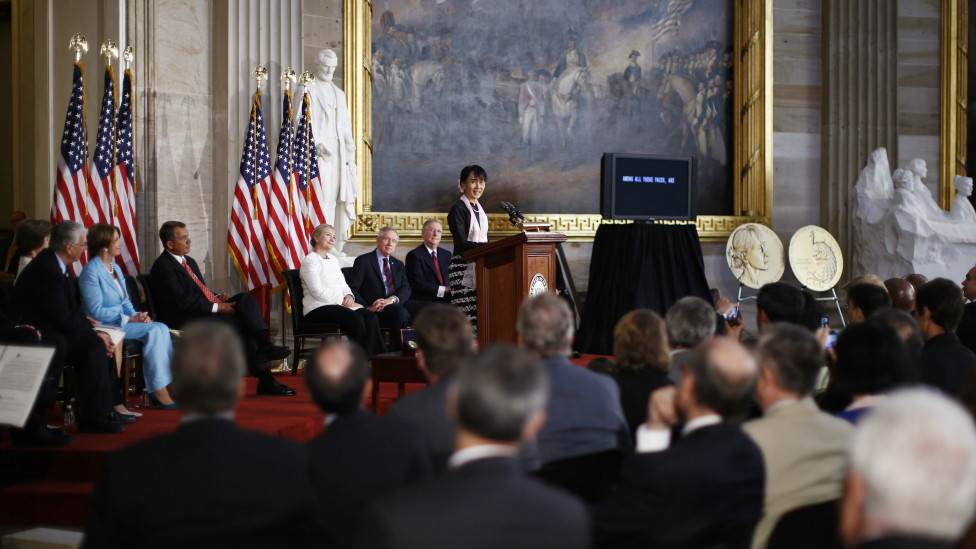 • Lãnh tụ phe Dân chủ Miến Điện (Myanmar) phát biểu trước Quốc hội Hoa Kỳ sau khi nhận Huân chương Vàng, phần thưởng cao quý nhất Quốc hội Mỹ tặng cho các nhân vật dân sự. Với bà Suu Kyi, đây là cách Hoa Kỳ ghi nhận các công lao đóng góp cho tự do, dân chủ của bà.